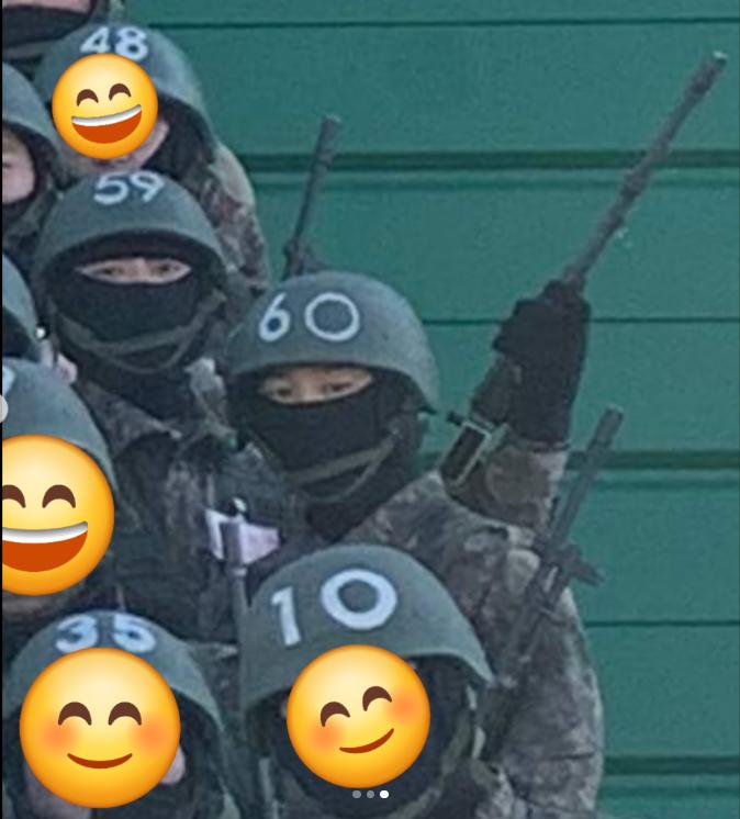 - 지민과 정국이 사격술 예비 훈련 중 전우들과 함께 찍은 단체 사진이 공개되었습니다.
